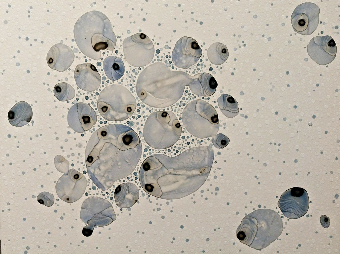 Beyond issues of content, I seek a mode of working that is meditative, an integration of the process of working with the work itself. This means loosely dropped-in thinned color, masking and layers, and lines to pick out suggestive imagery and compositional substrate from seemingly random areas of wash. This attentiveness to the value of accidents is for me a way of accessing the spiritual and is how I draw on but manifest differently my family’s religious orientation. What I hope people take from my work, in contemplating the give and take of color and space, is something similar: a quiet (if complex) peace, a non-dogmatic space away from the hectic demands of everyday life.”