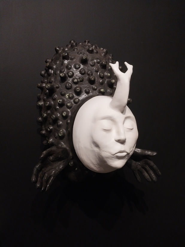 “The current projects I'm really enamored with are the works of ceramic sculpture, new in my world but have been heavily influential and all encompassing. I've been trying my hand at life-like faces and body parts trying to reach some likeness that could stand in the shadow of the great European sculptors of the past. Mixed with moments of beauty and divinity that I see throughout Meso-American works but with hints of their playful side found in erotic works of the Moche. And tied together with odd elements that stand out paired with contrasting colors and usage of visual weight that I've found from influences like Japanese manga.” - Sage Danielson